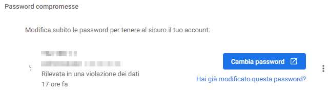 Vediamo nel dettaglio le funzionalità inedite. La prima è quella che guida l’utente alla modifica delle password compromesse ovvero quelle oggetto dei tanti leak e delle violazioni perpetrate ai danni dei servizi online. Ora in seguito al controllo automatico (accessibile digitando chrome://settings/passwords/check nella barra dell’indirizzo) compare il pulsante “Cambia password” che rimanda alla singola piattaforma.