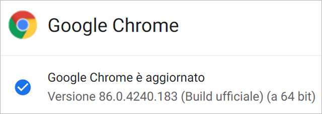 Come sempre in questi casi per forzare l’aggiornamento è sufficiente aprire il menu principale con un click sull’icona a forma di tre puntini presente nell’angolo superiore destro dell’interfaccia per poi selezionare la voce “Guida” e infine “Informazioni su Google Chrome”. In alternativa è possibile digitare “chrome://settings/help” nella barra dell’indirizzo. Al termine del download verrà chiesto di riavviare il software per applicare l’update.