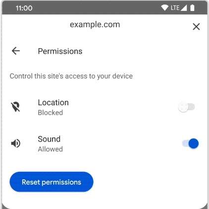 Alcuni siti chiedono il permesso di accedere a microfono, fotocamera e posizione. Con la nuova versione di Chrome è possibile ora tenere traccia dei permessi per singolo sito. Toccando l’icona del lucchetto nella barra degli indirizzi viene aperto un pannello con l’elenco dei permessi, attraverso il quale l’utente può revocarli.