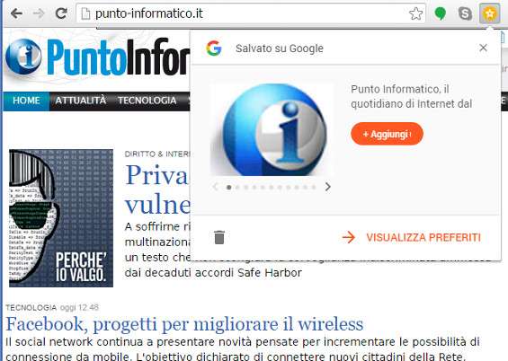 L’estensione è denominata “Save to Google” ed equipaggia il browser desktop di un’icona a forma di stella, oltre a quella dedicata ai Preferiti mostrata nella barra degli indirizzi: basta un clic per aggiungere la pagina che si sta visualizzando nell’elenco della pagine salvate, raggiungibile presso la pagina dedicata e associato al proprio account Google.