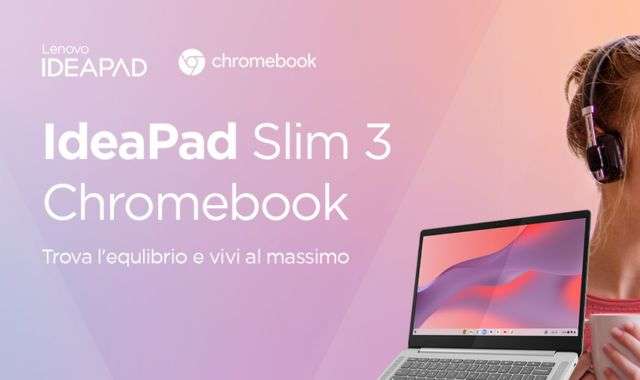 Lenovo IdeaPad Slim 3 è un chromebook da 14 pollici con risoluzione Full HD e tutto quello che serve per avere un compagno di studio o di lavoro leggero, veloce e dalla lunga durata della batteria. Oggi è in offerta a tempo su Amazon in esclusiva a soli 219 euro invece di 299, con spedizione Prime che ti assicura la consegna veloce.
