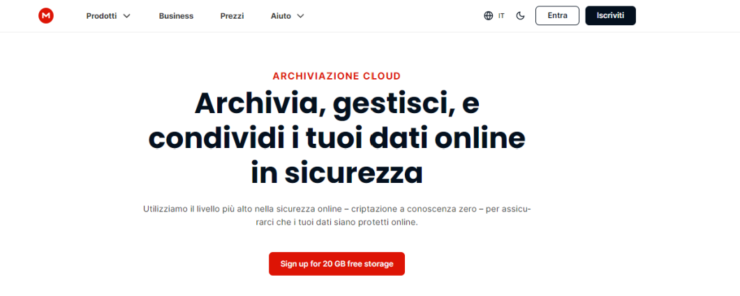 Tra i servizi di cloud aziendale più completi e sicuri è possibile provare MEGA, una delle soluzioni migliori per chi vuole risparmiare e pagare solo per lo spazio di archiviazione e la banda di trasferimento utilizzati nel corso del mese, senza sorprese nel costo finale.