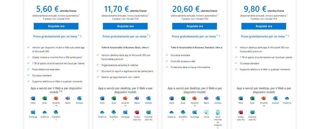 | Business Mensile | 9.99 € / al mese | 1 TB (per utente) |