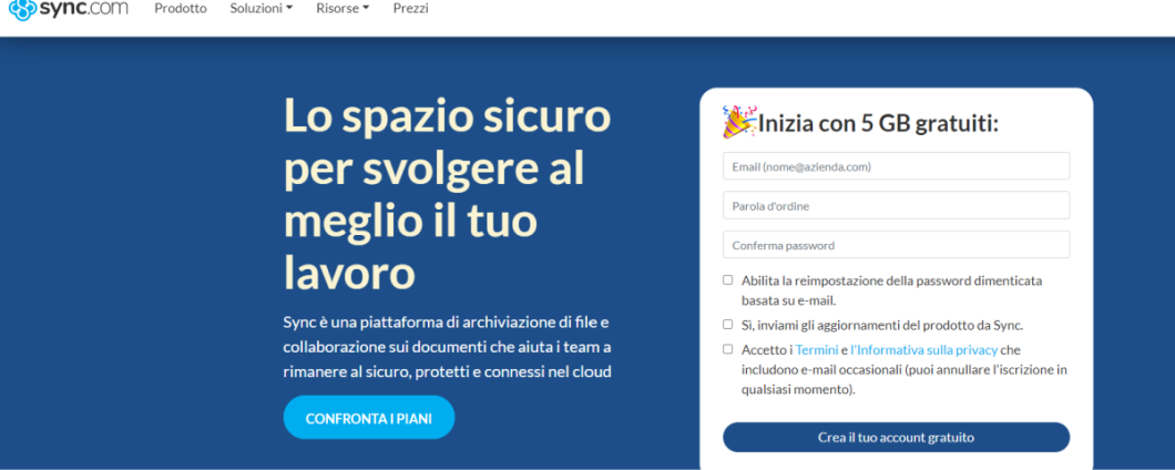 Con Sync.com è possibile, infatti, inviare e ricevere file in maniera professionale con il logo dell’azienda, condividere file e cartelle in tutta sicurezza con lo staff di lavoro o con il team di sviluppo, accedere ai file da qualsiasi dispositivo in qualsiasi parte del mondo, sincronizzare direttamente il desktop del PC con il proprio cloud aziendale e beneficiare di numerosi piani personalizzabili per ogni azienda (da 2 TB fino al piano con spazio d’archiviazione illimitato).