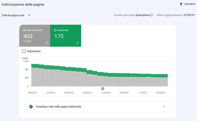 Impossibile poi trascurare la miniera di informazioni offerta dalla scheda Rendimento, grazie alla quale si può analizzare la performance del sito sul motore di ricerca.