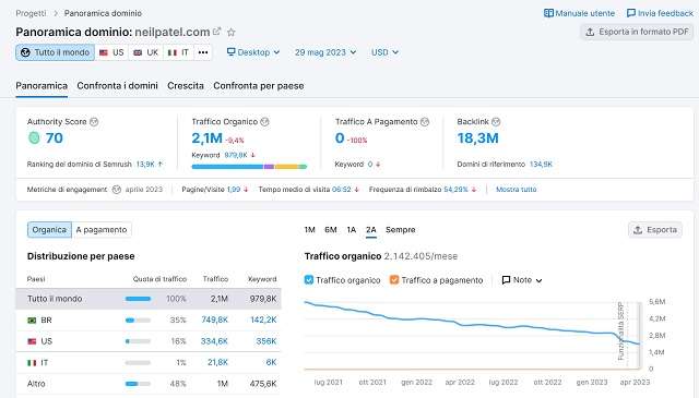 In maniera analoga, lo strumento Panoramica keyword offre l’accesso al database di ricerca delle parole chiave più grande del mercato, con informazioni basilari quali il volume di ricerca e la tipologia di intento. Attraverso l’utilizzo di Semrush è inoltre possibile eseguire un’analisi approfondita dei backlink, grazie al backlink checker più completo e aggiornato disponibile online.