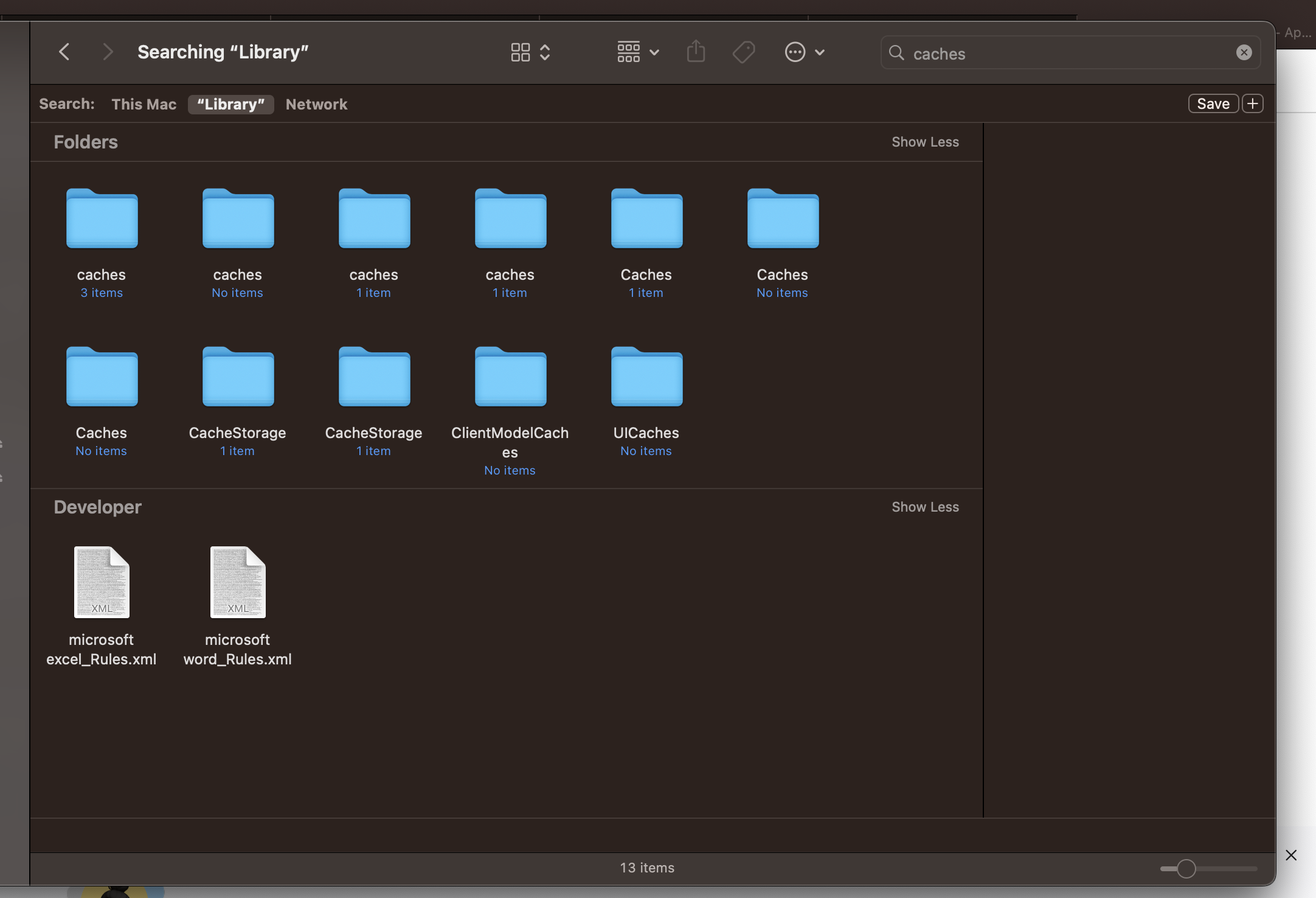 Per svuotare la cache di sistema, è possibile aprire mediante Finder i percorsi ~/Library/Caches/ e /Library/Caches/, selezionare tutto (Cmd + A) e spostare nel cestino. In alternativa, sarà sufficiente tenere premuto il tasto option sulla tastiera, fare clic su un punto della Scrivania privo di icone, selezionare Vai > Libreria > Caches ed eliminare tutto.