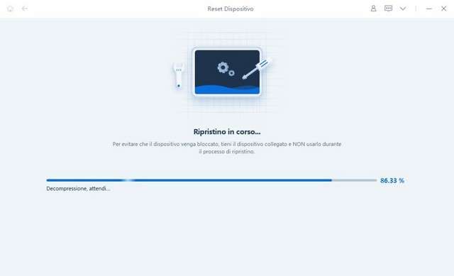 Nota 2. Attenzione! il reset di fabbrica eliminerà tutti i dati e le impostazioni presenti sul tuo iPhone. Assicurati di avere un backup di recupero o dovrai impostare il telefono come nuovo.A seconda della grandezza del firmware, il processo di reset di fabbrica può durare diversi minuti. Non scollegare lo smartphone dal PC e assicurati di avere una buona connessione.