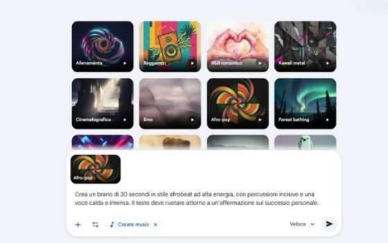 Per iniziare basta aprire Gemini, cliccare su “Strumenti”, selezionare “Create Music” e digitare la propria richiesta. Tutto qui. Si può scegliere anche una traccia da remixare tra quelle a disposizione (Afro-pop, rap anni ’90, pop latino, ballata folk, cinematografico, ecc.)