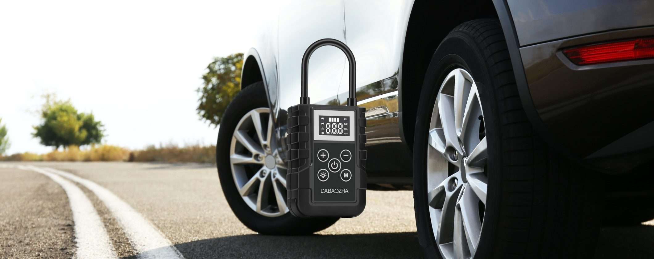 Con il Compressore Portatile Dabaozha non hai più problemi di pneumatici sgonfi. Grazie alla sua tecnologia intervieni in un attimo e in modo indipendente senza dover chiamare i soccorsi o rovinare la tua auto.
