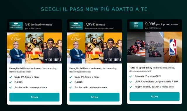 Con NOW TV puoi scegliere tra tre pass incredibili:
