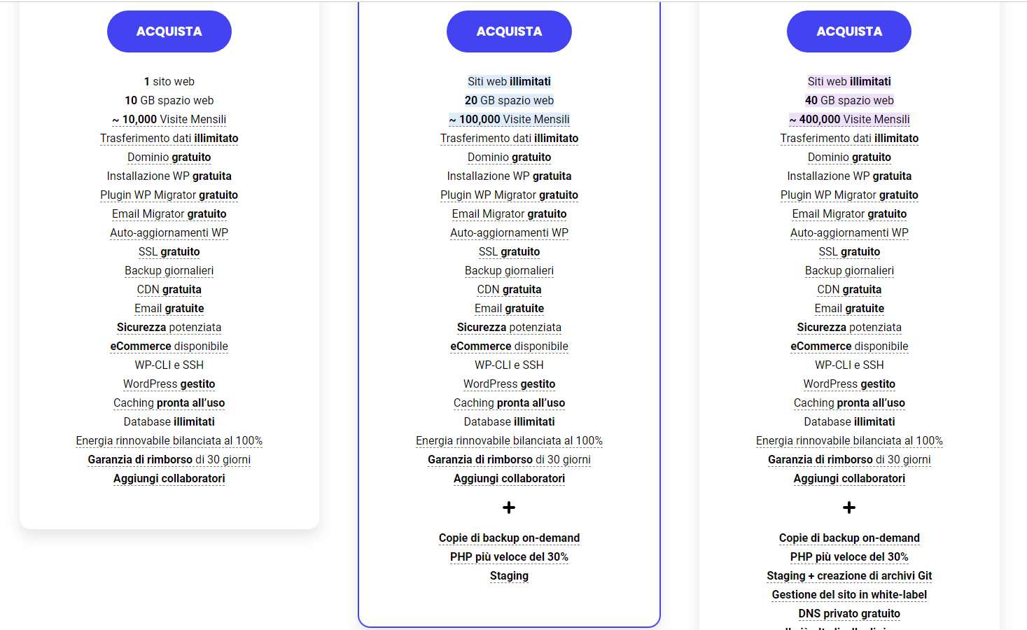 Se stai cercando un hosting web veloce, sicuro e affidabile, Siteground è sicuramente tra le scelte più opportune. La nota società, infatti, non solo offre una scelta eccellente per le tue esigenze di hosting, ma con la promozione attualmente in corso garantisce anche prezzi imbattibili con sconti fino al 76% su tutti i suoi piani di hosting. E non è tutto: troverai incluso nel prezzo anche un dominio gratuito e il trasferimento del tuo sito (se ne hai già uno) senza costi aggiuntivi.