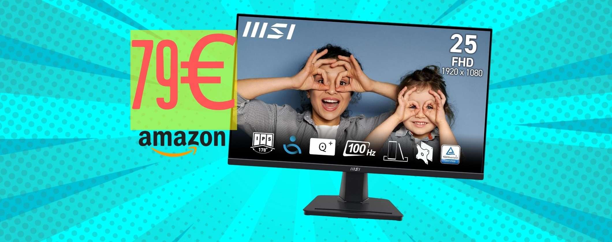 Tieniti forte perché ti stiamo segnalando una promozione davvero straordinaria e che potrebbe scadere da un momento all’altro. Dunque per non rischiare di perderla vai immediatamente su Amazon e metti nel tuo carrello il monitor MSI PRO da 24,5 pollici a soli 79 euro, invece che 99,99 euro.