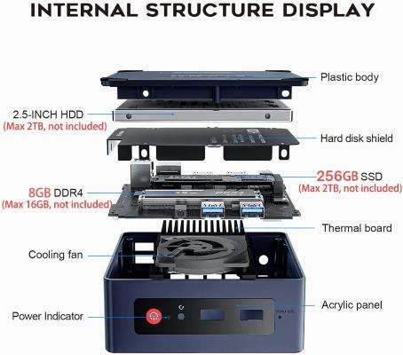 Il Mini PC in questione è dotato di processore Intel Jasper Lake di undicesima generazione che ti garantisce una velocità di esecuzione più veloce, un’esperienza stabile e affidabile. Il chip è accompagnato da 8GB di RAM DDR4 e un SSD Sata3 M.2 da 256GB: in entrambi i casi le memorie sono espandibili.