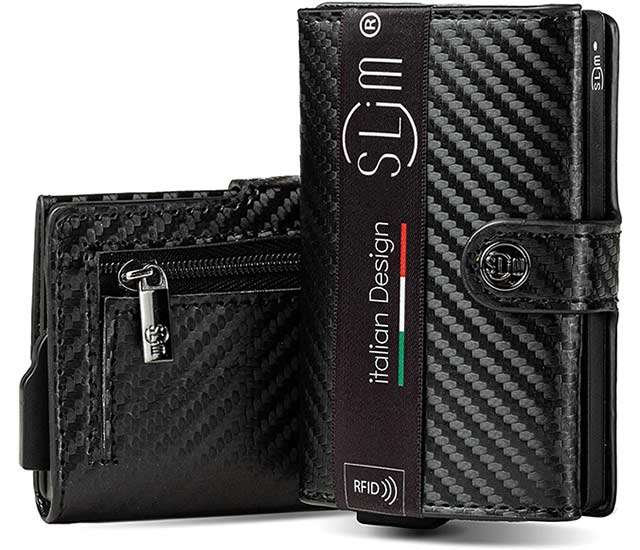 - Portafoglio RFID per proteggere le carte in fibra di carbonio: sconto 8% e coupon -10%;