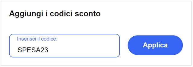 Come scritto in apertura, per approfittare di questa opportunità è sufficiente inserire il codice SPESA23 nell’apposito campo, come mostrato nell’immagine qui sotto, prima di eseguire il pagamento con uno dei metodi proposti. Il prezzo crollerà così immediatamente del 10%, attivando lo sconto che andrà ad aggiungersi agli altri eventualmente già applicati in automatico dai venditori.