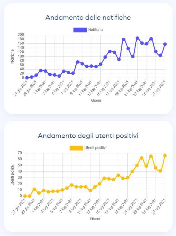 - dato il basso utilizzo dell’app, sono sempre di meno le notifiche inviate per ogni positività registrata