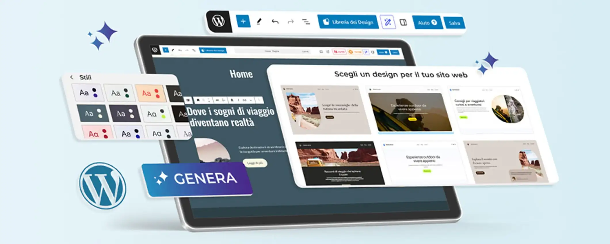 Puoi scegliere tra migliaia di temi e plugin già disponibili con WordPress, personalizzare ogni aspetto del tuo sito, configurare lo spazio web e aggiungere sempre nuovi contenuti. Tra le novità più interessanti c’è l’integrazione dell’Intelligenza Artificiale per accelerare la creazione del sito web.