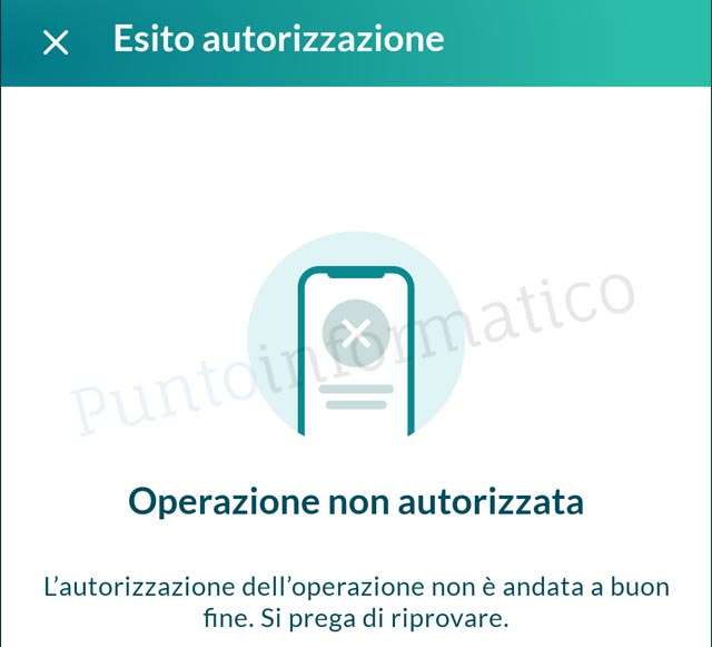 Operazione non autorizzata. L’autorizzazione dell’operazione non è andata a buon fine. Si prega di riprovare.