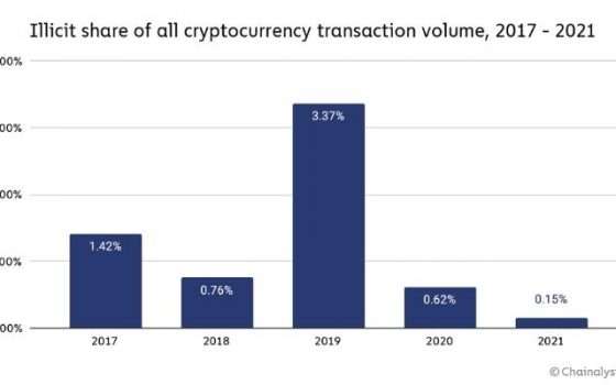 In pratica, le transazioni che coinvolgono indirizzi illeciti hanno rappresentato solo lo 0,15% del volume delle transazioni di criptovalute nel 2021. Con questo non si vuole minimizzare l’importanza di lottare contro la criminalità organizzata e gli attacchi crittografici. Al contrario, si pone l’accento su come la trasparenza della tecnologia blockchain aiuti in questo.