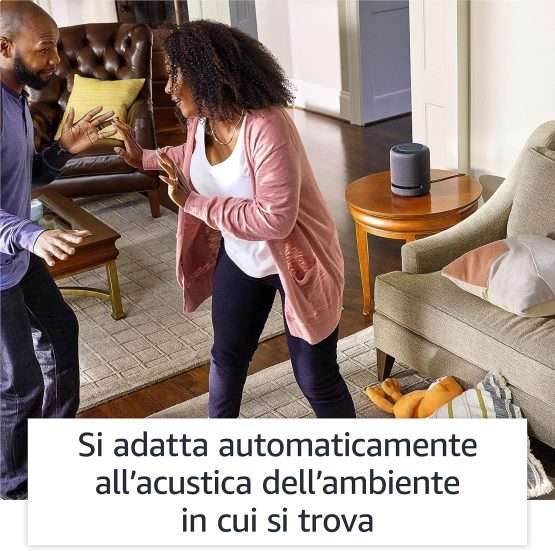 Con dimensioni più grandicelle ma comunque compatto, lo puoi mettere un po’ dove vuoi. Al suo interno è custodito un sensore di ultima generazione che riconosce automaticamente l’ambiente in cui lo hai posizionato così regola l’audio per un ascolto senza compromessi.
