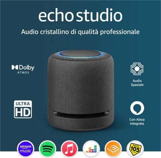 Non perdere neanche un secondo in più e porta immediatamente a casa il tu Echo Studio grazie allo sconto del Black Friday 2023, con lo scontocosta appena 179€ su Amazon.