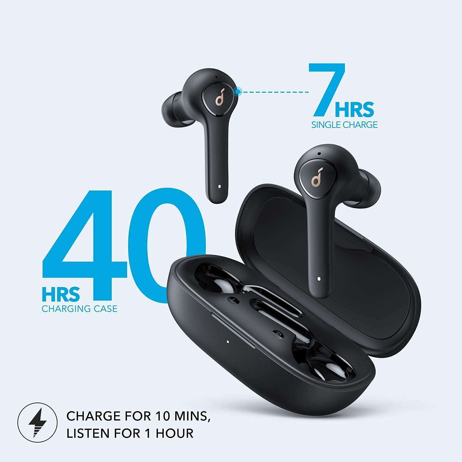 Soundcore è un sottobrand di Anker, marchio tra i più apprezzati su Amazon grazie al suo ottimo rapporto qualità/prezzo. Anche queste cuffie true wireless Soundcore Life P2 non sono da meno, con un bel design e una qualità sonora davvero niente male. Il produttore dichiara un’autonomia fino a 7 ore con una sola carica, che diventano ben 40 ore con una carica completa della custodia.