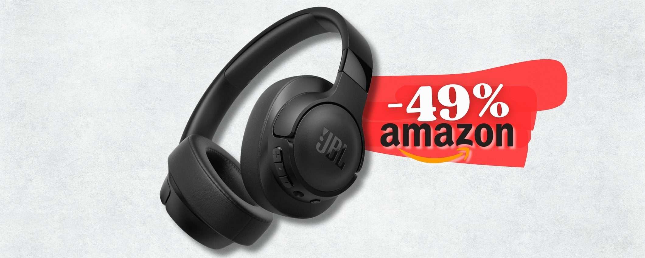Collegati al volo su Amazon dove lo sconto del 49% ti permette di acquistare le tue cuffie Over-Ear Bluetooth di JBL ad appena 40,99€. Basta un click e le aggiungi al carrello.