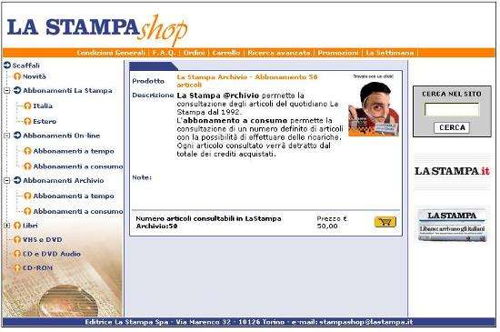 Oggi l’archivio del giornale è disponibile online tramite abbonamenti a consumo o a tempo , con costi per 50 accessi , ad esempio, che possono arrivare a 50 euro. “La Stampa – ha dichiarato ieri Elkann – è il primo giornale d’Italia a rendere disponibile sul web il proprio archivio storico. A livello mondiale esistono solo pochi altri esempi, come il Times e il NY Times, i quali pero’ non concedono l’accesso gratuito”.