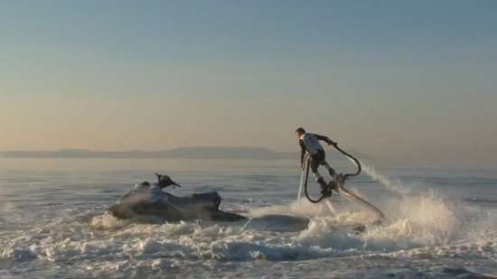 Un motore di moto d’acqua dalla potenza di 100 CV indirizza un getto d’acqua attraverso un tubo ad un paio di stivali e ad alcuni stabilizzatori manuali. Grazie al getto d’acqua che fuoriesce dagli scarponi, quindi, l’utente è spinto fuori dall’acqua fino ad un’altezza massima di circa 9 metri. In questo modo, si può volare per aria, ma la stessa potenza può essere utilizzata per buttarsi a capofitto fra le onde e nuotare come un delfino umano.