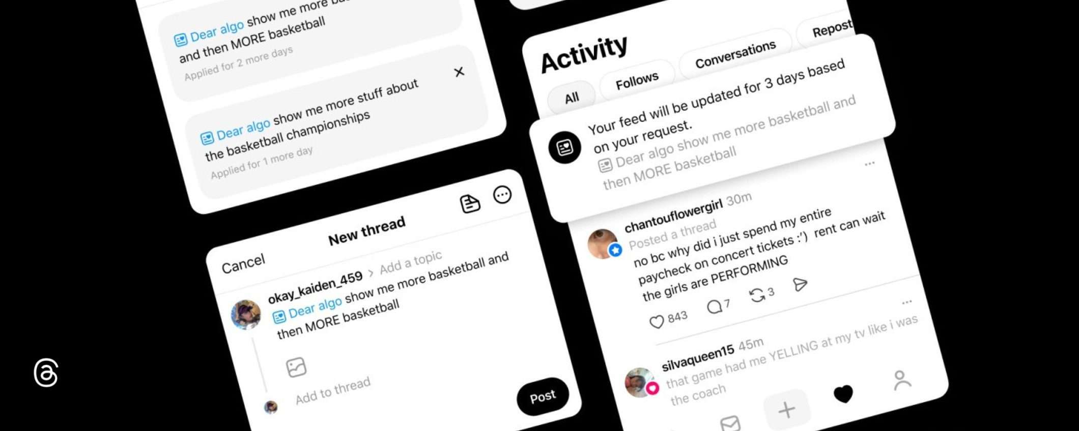 Su Threads sbarca negli Stati Uniti la funzione “Dear Algo“: si scrive un post che inizia con quelle due parole magiche, si spiega cosa si vorrebbe vedere nel proprio feed, e l’algoritmo obbedisce. Per tre giorni, poi si vedrà.