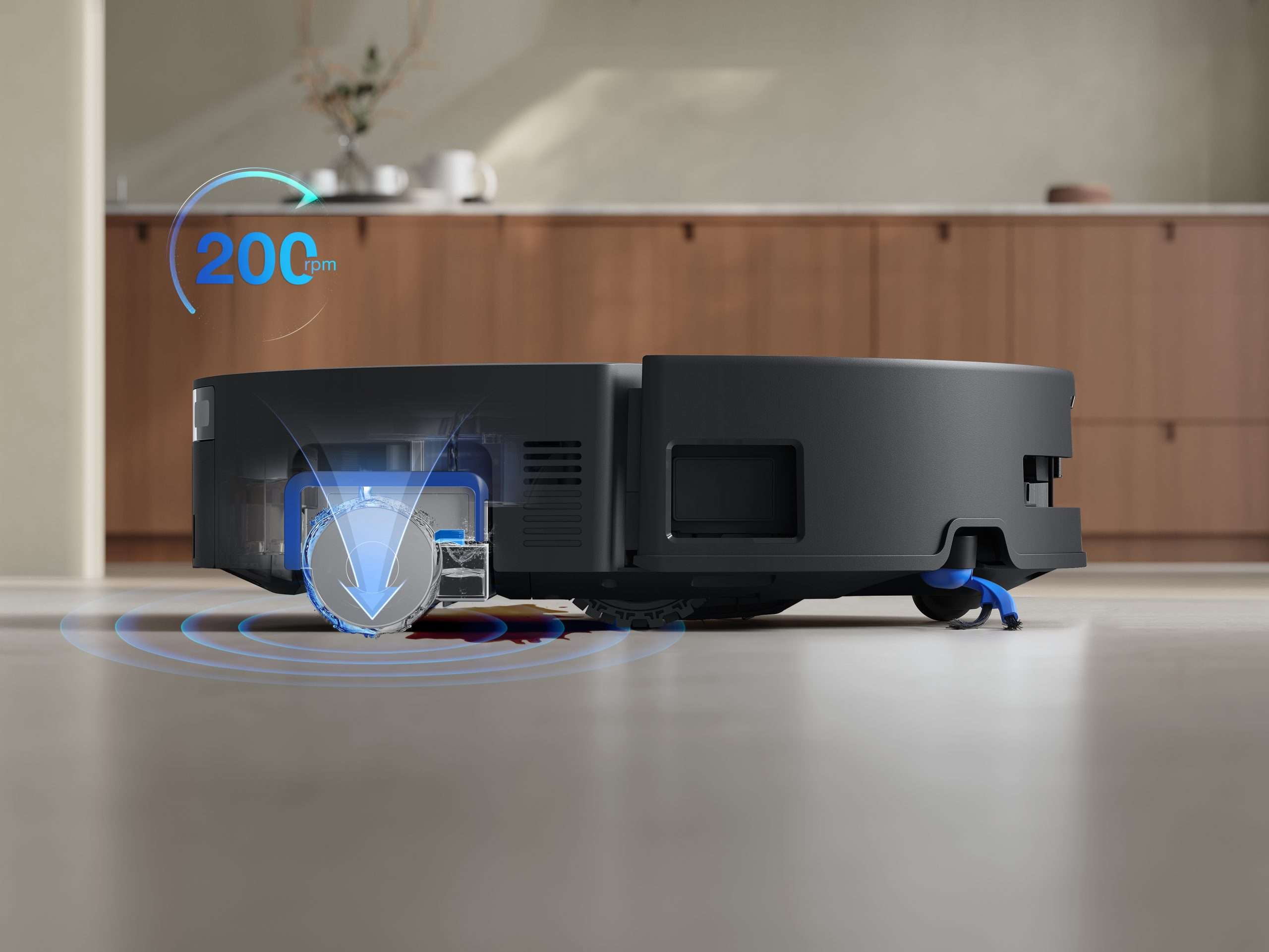 Un’altra novità molto utile è rappresentata dalla tecnologia TruEdge 2.0, che permette al mop di estendersi e arrivare con precisione fin sotto i battiscopa e vicino alle pareti. Grazie a un sistema di rilevamento 3D dei margini, il T80 riesce a pulire in punti inaccessibili per la maggior parte degli altri robot.