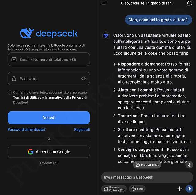 AGGIORNAMENTO (29/01/2025): l’applicazione ufficiale di DeepSeek, da qualche ora, non è più disponibile in Italia. Non si conoscono le ragioni della cancellazione, ma al momento è impossibile scaricarla da Google Play per Android e da App Store per iPhone e iPad.