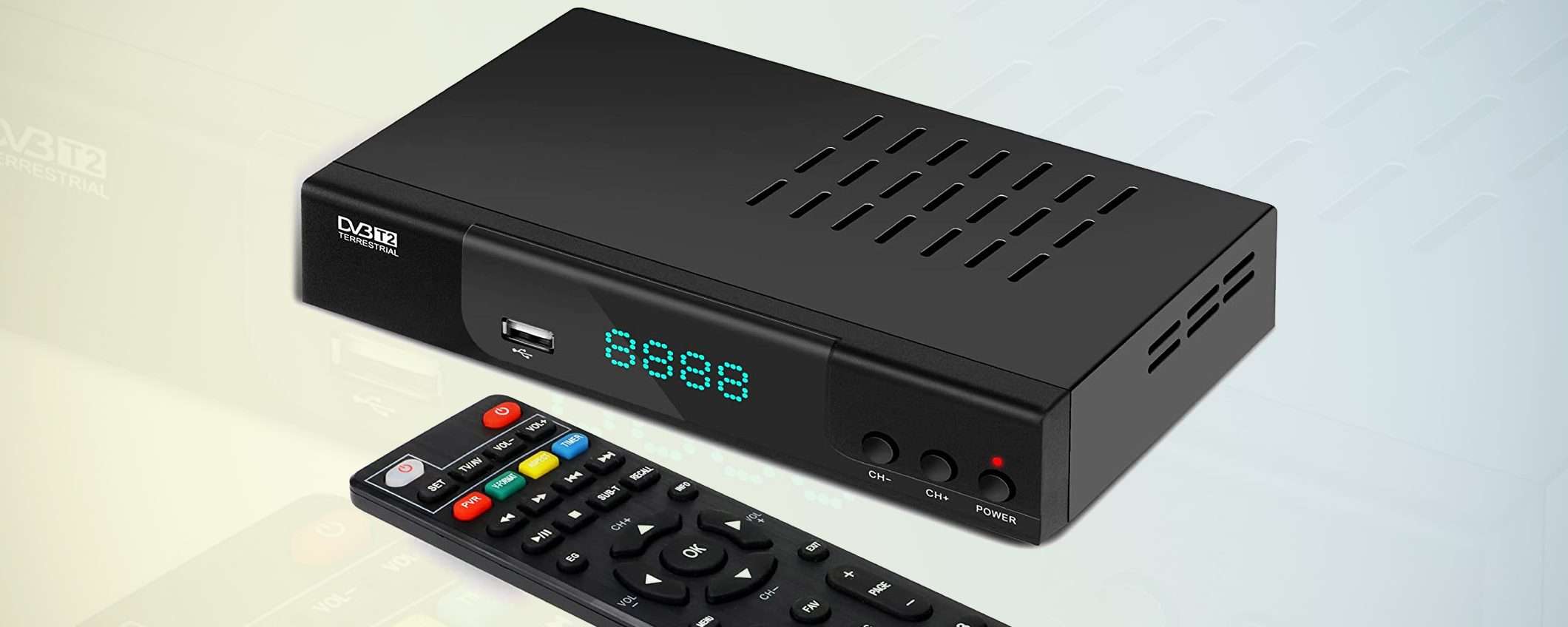 Non farti trovare impreparato all’appuntamento con il nuovo digitale terrestre: anche se il tuo televisore ha ormai qualche anno, non lo devi cambiare, ti basta un decoder DVB-T2 acquistabile con una piccola spesa. Qui è dove ti segnaliamo un modello multifunzione proposto oggi in forte sconto su Amazon.