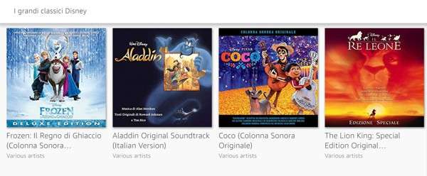 La scelta delle playlist Disney è ampia e non sempre rigorosamente esclusiva dei più piccolini: