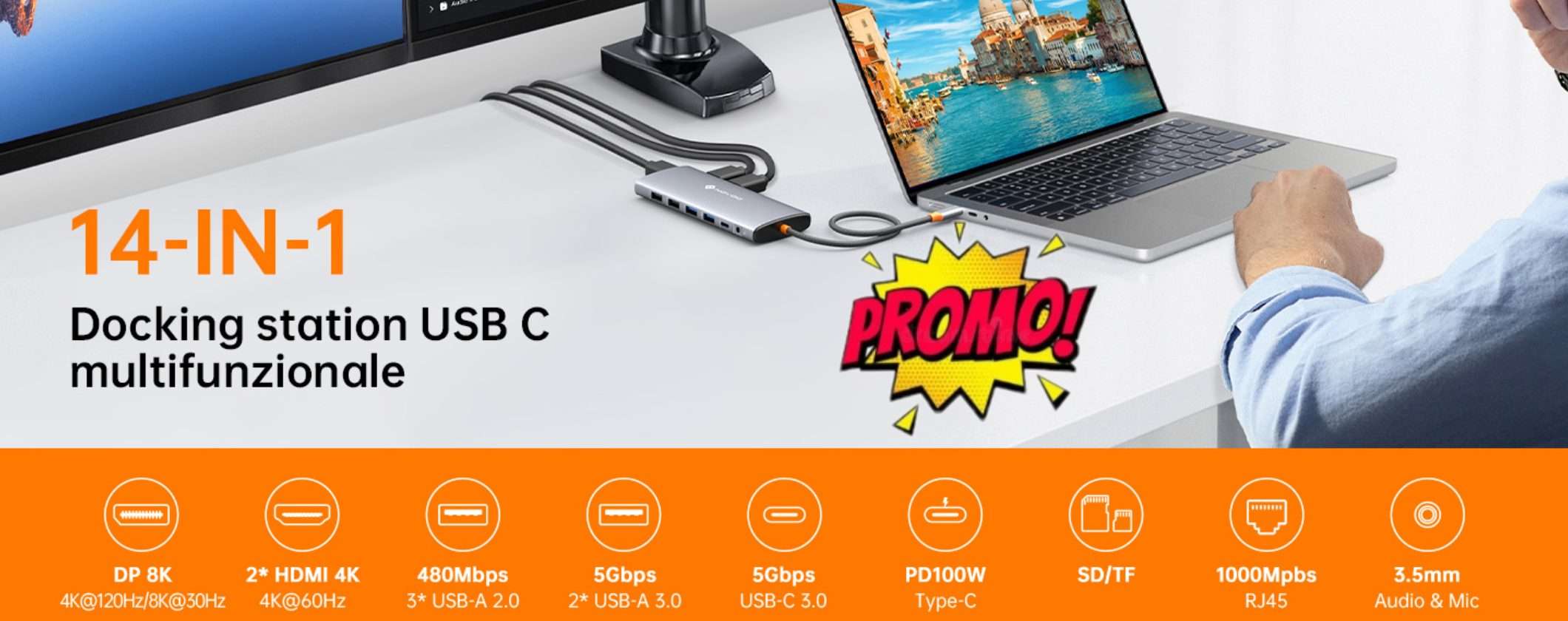La Docking Station 14 in 1 NOVOO è uno di quei dispositivi che tutti dovrebbero avere per produttività e intrattenimento. Da un’unica porta USB-C ricavi 14 porte differenti per connettere tutti i dispositivi che vuoi. Tra l’altro, questa versione, permette di connettere fino a 3 monitor contemporaneamente. Ordinala in offerta shock su Amazon!