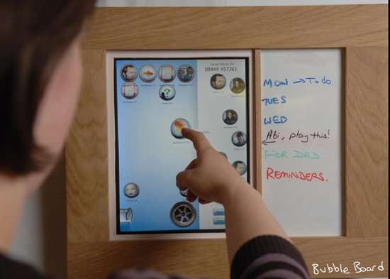 Per ovviare a questi limiti, nel centro ricerche abbiamo realizzato “Bubble Board” (vedi qui sopra), una soluzione che consente di identificare i vari chiamanti con bolle diverse l’una dalle altre. È possibile spostare sulla tavola grafica le singole bolle in base alla priorità, conoscere a priori la durata del messaggio in base alle dimensioni della bolla, registrare solo alcune conversazioni. Il tratto comune a tutte le tecnologie che sviluppiamo è l’adattabilità del lay-out alle esigenze della famiglia e non viceversa.