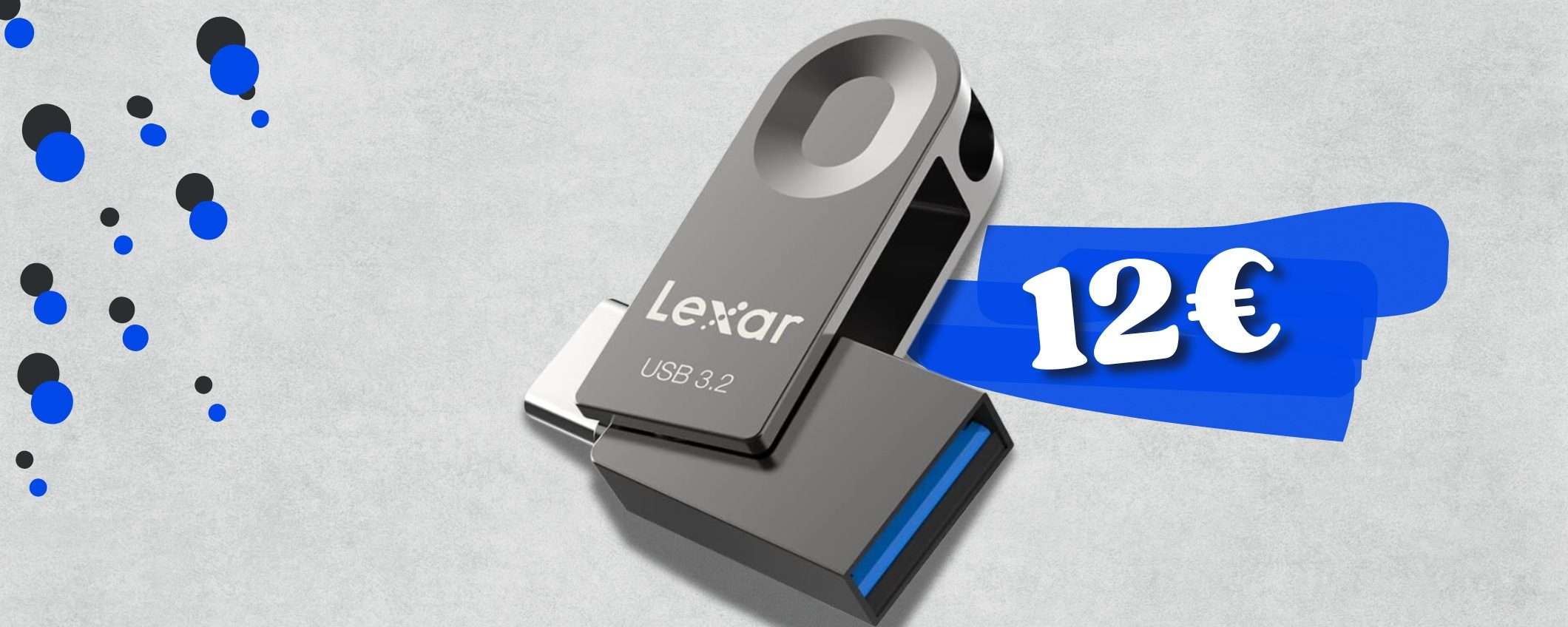 Collegati al volo su Amazon per acquistare questa chiavetta USB doppia di Lexar a soli 12,85€ con sconto del 49%.