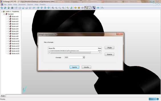 Con Delcam Exchange si hanno due opzioni di pagamento: o si acquista la versione full del programma per illimitate conversioni, oppure si utilizza la procedura interna di pagamento tramite voucher. Il sistema pay-in-app permette di pagare solo per l’operazione di conversione richiesta, con un esborso economico molto limitato e corrispondente alle sole necessità. Per esportare il file, quindi, cliccare su File/Esporta . Scegliere il formato in uscita dal menù a tendina Formato e cliccare su Esporta .