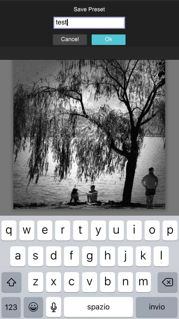 Il lavoro finale può essere salvato nel rullino, inviato via email, o condiviso sui più noti social network, e se si è particolarmente soddisfatti delle impostazioni realizzate, è possibile anche salvare un nuovo preset da richiamare per le elaborazioni future.