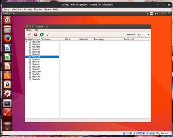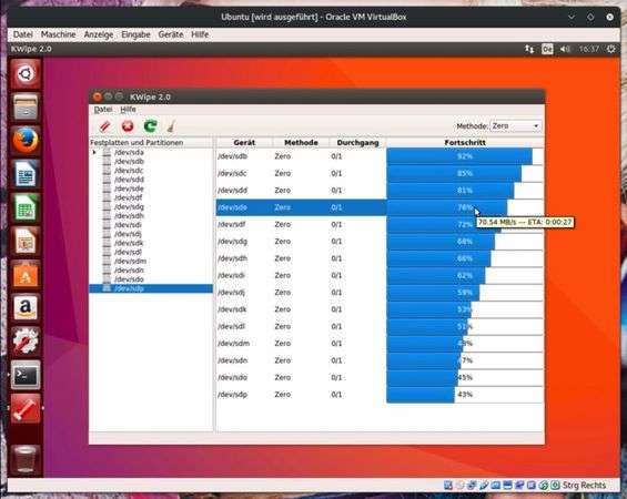 Quando si avviano le cancellazioni, per ciascuna delle partizioni appare una barra che indica il progresso dell’operazione. Passandoci sopra col mouse il tooltip suggerisce una stima del tempo mancante per il termine della cancellazione. La lista delle operazioni può essere aggiornata manualmente, e ripulita dalle operazioni terminate.