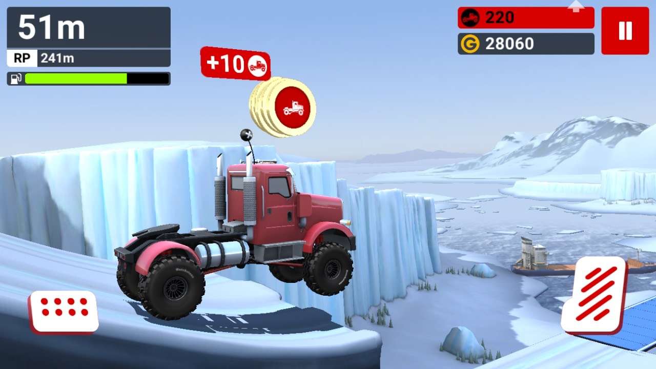Il gioco è ben fatto sotto vari aspetti: prima di tutto a livello grafico (molto curato, pur nella sua semplicità), ma ancora di più nella formula di gioco: il potenziamento dei veicoli consente di ottenere risultati sempre migliori, sbloccando poco per volte nuovi percorsi e nuovi veicoli. Ci sono ben 11 veicoli, tutti ben caratterizzati, con comportamenti diversi che si adattano più o meno bene ai tre possibili scenari (città, deserto, neve): il Tir o il Tank offrono grande stabilità sui percorsi innevati, oltre ad avere un buona resistenza al vento e la possibilità di abbattere facilmente i ponti verticali per poterli attraversare; non sono però molto adatti ove occorre molta velocità o agilità per effettuare lunghi salti…