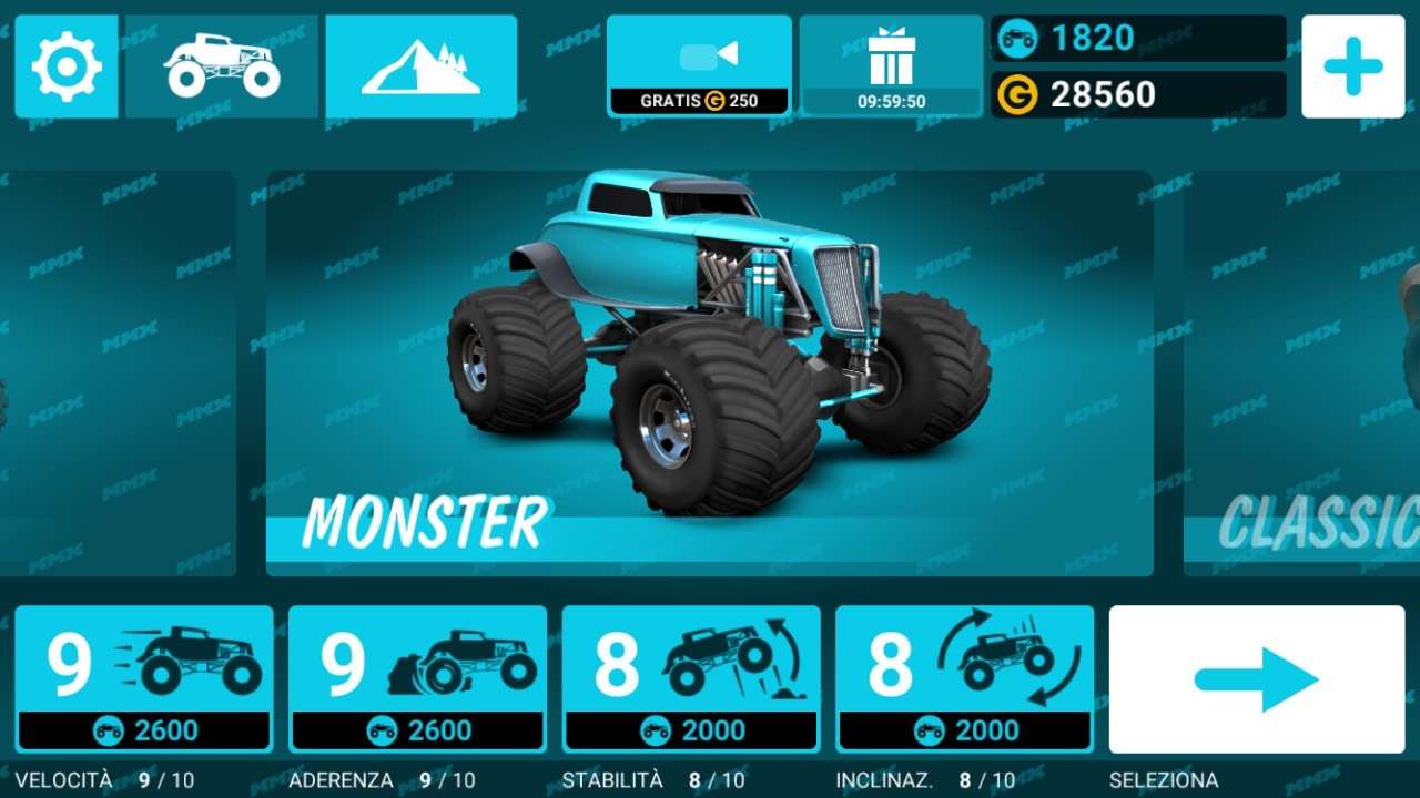 Le monete conquistate consentono di potenziare il veicolo scelto (attenzione: ogni veicolo ha le sue monete specifiche) e si può scegliere di aumentare la velocità massima, l’aderenza, la stabilità (per evitare continue impennate che rendono difficoltoso il controllo, e l’inclinazione: mentre siamo in volo possiamo infatti operare su acceleratore e freno per regolare l’inclinazione del veicolo ed effettuare un atterraggio perfetto.