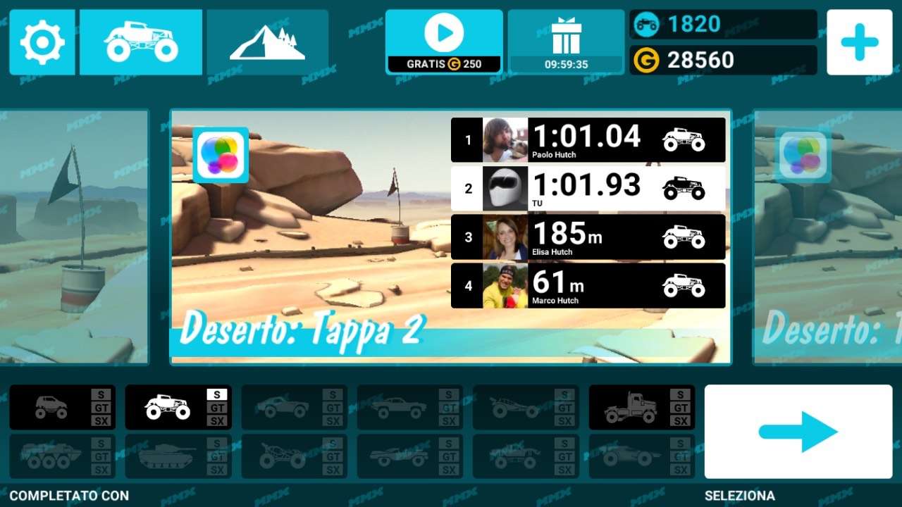Lo sblocco dei vari veicoli consente di accedere poi ai vari percorsi, visto che le richieste per sbloccare alcuni di questi sono legate proprio al raggiungimento di determinati traguardi con veicoli specifici (per esempio: “Completa Neve 2 in meno di x secondi utilizzando Tir, per sbloccare Città Pro”). I veicoli sono 11, ma una volta potenziati al massimo, si possono sbloccare versioni sempre più potenti dei veicoli stessi. Gli scenari di gara sono tre, ma ognuno di loro offre più percorsi, tappe normali, maratone, percorsi “pro”, e altro ancora…