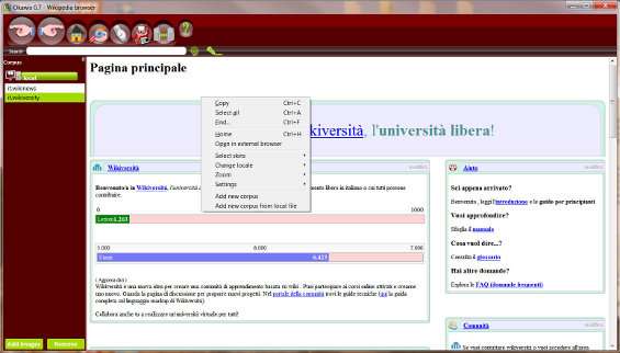 Infine c’è da notare che con un clic destro ovunque nella schermata è possibile accedere a un menù contestuale che offre accesso ad altre funzioni, come la possibilità di aprire la pagina in un browser esterno ( Open in external browser ) o cambiare la skin del programma ( Select skin ).