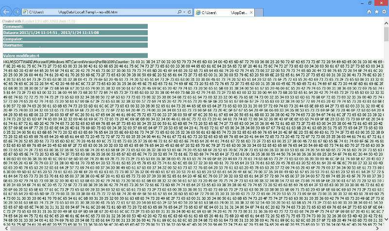 Una volta individuate e analizzate le differenze, un clic su Pulisci permette di ricominciare con due nuovi screenshot del registro. Attenzione, però: qualora si clicchi su Pulisci e gli shot precedenti non si siano salvati con Shot and Salva , si perderanno i file su cui è stato fatto il confronto, mentre il confronto potrebbe essere salvato manualmente direttamente dall’HTML o dal TXT che si apre quando si clicca su Confronta .