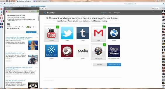 Molti sono gli utenti che si collegano a Internet semplicemente per controllare Facebook, navigare su YouTube, scrivere su Twitter o chattare con i propri amici lontani e vicini. Molti altri, invece, sfruttano la Rete alla ricerca delle notizie più interessanti su tutti gli argomenti possibili, condividendole poi con i propri contatti via posta o social network. È con un certo terrore che alcuni esperti parlano di una sorta di trasformazione del Web, di cui la maggior parte degli internauti tende ad usare solo una parte dell’incredibile offerta contenutistica presente, riducendosi all’utilizzo dei soli servizi social. C’è anche chi ha pensato di sfruttare a proprio vantaggio questo fenomeno, creando un browser ad hoc per permettere di compiere in un solo clic queste operazioni di routine. Ecco che nasce un browser che si integra con Facebook, Twitter, GMail, YouTube e lo fa per davvero, trasformando queste applicazioni Web in parti integranti della propria interfaccia. Il suo nome? RockMeIt.