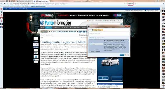 RockMeIt permette anche di condividere facilmente i contenuti che si stanno consultando, attraverso il pulsante Share . Mentre si legge un articolo, infatti, è possibile condividerlo via GMail, Facebook o Twitter, semplicemente cliccando su Share e utilizzando l’apposita finestra che compare.