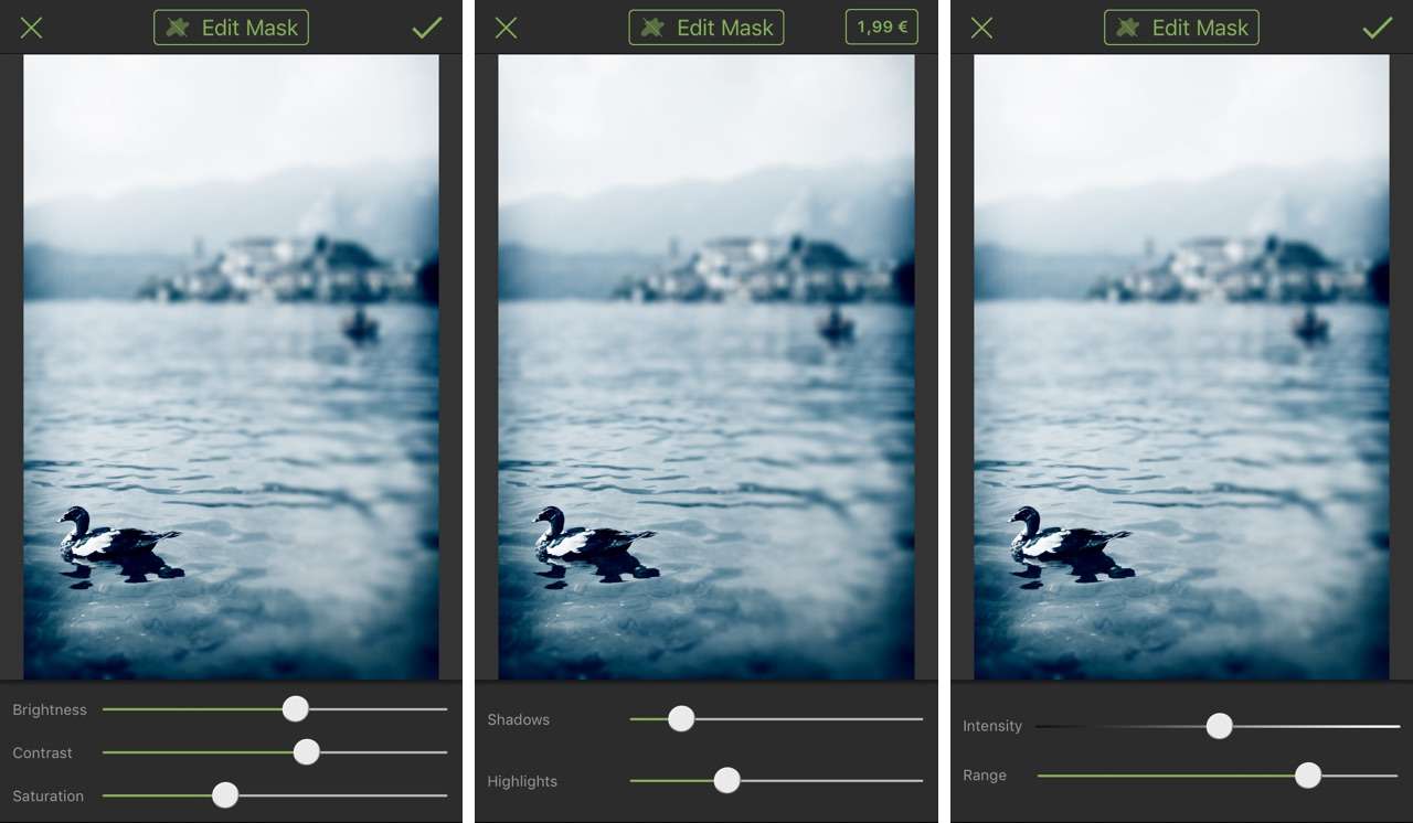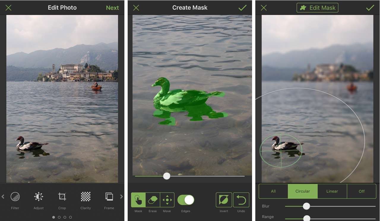 La prima è la possibilità di disegnare una maschera per applicare gli effetti in modo selettivo. La cosa migliore di questa opzione è che gli strumenti di disegno della maschera sono in grado di riconoscere i bordi, così da poter selezionare in modo semplice i soggetti che vogliamo in qualche modo evidenziare. È possibile per esempio selezionare il soggetto in primo piano per sfocare il resto dello scatto, simulando così un effetto bokeh, quello che l’iPhone 7 Plus è in grado di realizzare in modo automatico grazie anche alla doppia camera.