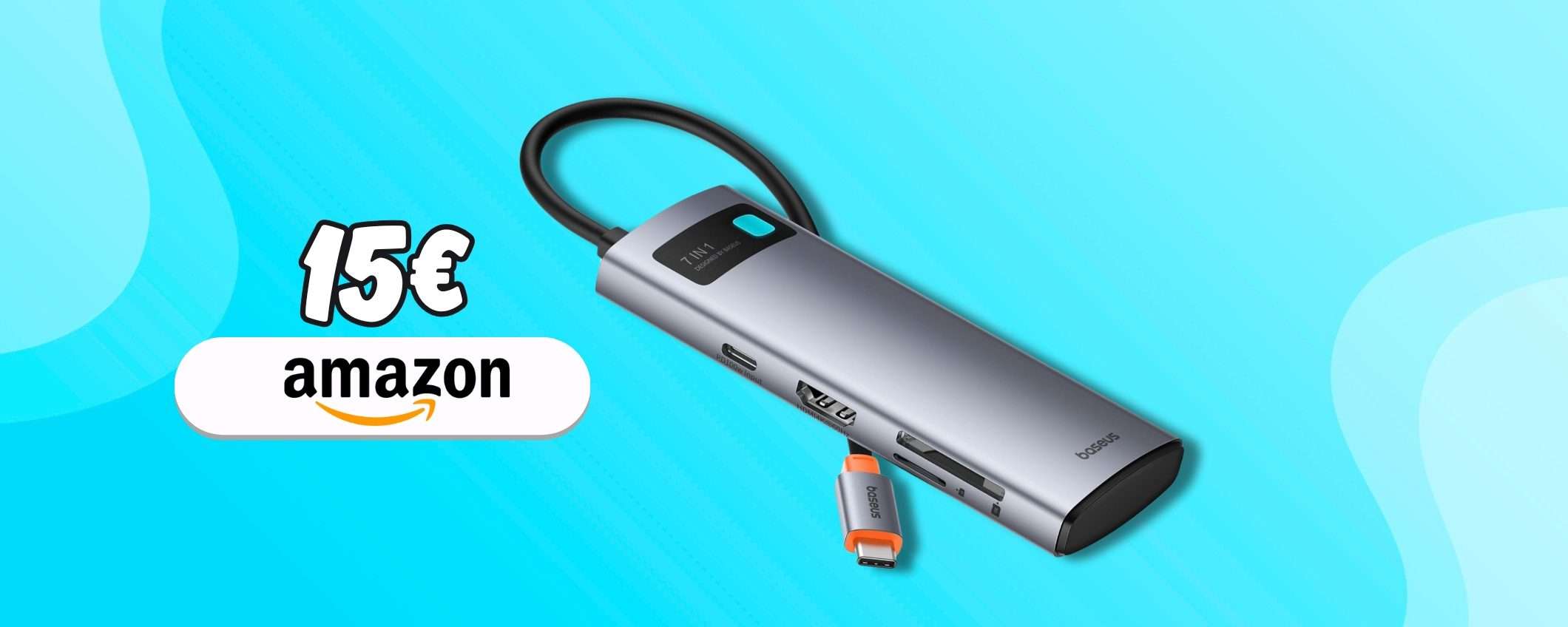Un Hub USB C con tutto al posto giusto, in fin dei conti ha 7 risorse al suo interno. Il prodotto di Baseus è vincente soprattutto se il tuo laptop, ad esempio, è di ultima generazione ma ha sacrificato diverse entrate per ottenere l’aspetto slim. Portatile e resistente, è anche economico con la promozione in corso su Amazon. Spunta subito il coupon del 25% in pagina e pagalo appena 14,95 euro invece di 19,99 euro. Cosa aspetti?